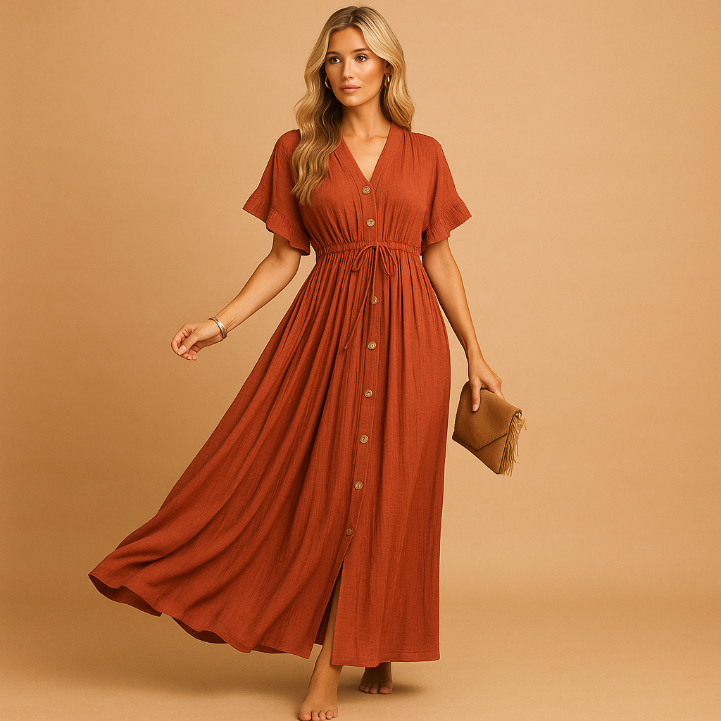 Pozwól sobie błyszczeć w słoneczne dni z , a zwiewna damska sukienka plażowa który bez wysiłku łączy styl i wygodę. Dzięki płynna sylwetka i miękka mieszanka bawełny ta sukienka zapewnia najwyższy komfort, niezależnie od tego, czy założysz ją na strój kąpielowy, czy zdecydujesz się na swobodny letni wygląd. Model świeży pomarańczowy kolor sprawia, że ta sukienka przyciąga wzrok na plaży lub przy basenie.